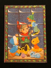 1 VTG Xmas Greeting Card Excited Children Looking Through Toy Store Window 🧸