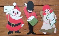 VTG 60s MCM Kids Christmas Cards Lot of 2 Toy Soldier and Elf 7 Inches Signed