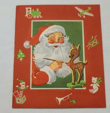 Vintage Mid Century Christmas Greeting Card Santa Claus Stocking Toy Hallmark