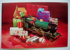 Vintage Christmas Greeting Card 1950s Train Locomotive Present Ornaments Toy Art
