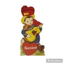Vintage Valentines Card Be My Valentine Pardner Cutout Mid-Century Modern