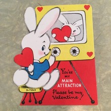 Vtg Bunny TV Valentines Card 40s 50s Ephemera Mid Century Modern, Unused