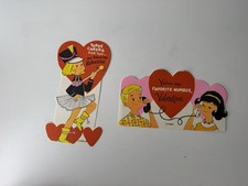 Vintage Valentine Cards Lot of 3 Girls Kitsch MCM Unused Die-Cut Mid-Century
