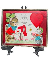 Valentines Card Framed Mid Century Cats Kitty Love Someone Framed Their Card USA