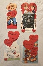 Vintage 1950s 1960s Die Cut Valentine Cards Lot Mid Century Kids Animals