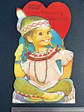 Vintage Valentine Sweet Girl Native American Indian Mid Century