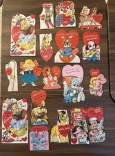 Vtg 50s Die-Cut Valentine Day Cards Lot 19 Used Mid-Century Litho MCM Kitschy