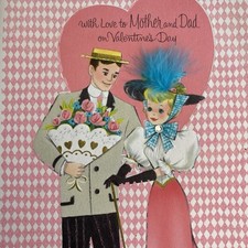 Vintage Mid Century Valentine’s Day Greeting Card Well Dressed Couple Feather