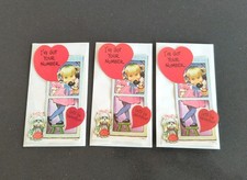 Set Of 3 Vtg MCM Valentine Card Class Valentine Telephone Booth Girl Dog J42