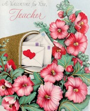 Vintage Mid Century Valentine greeting card mailbox pink flowers #b6g