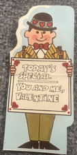 Vintage Valentine Card Man Holding Sign Todays Special You and Me Mid Century