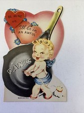 Vintage Valentine Card Cherub Cooking Pan Mid Century USA