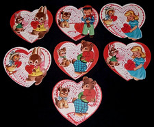 7 Vintage Used Teacher Valentine Cards Lot - 1950s Die-Cut Mid-Century Ephemera