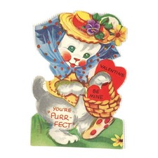Vintage Valentine Youre Purr-Fect Cat Design Mid Century Folded Cutout 2.5"x4"