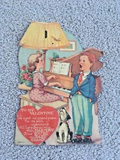 VINTAGE MID CENTURY LARGE 9.5" VALENTINE Piano SIngers CHILDS CARDS