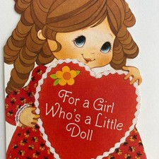 Vintage Mid Century Greeting Card Valentines Day Hallmark Cute Girl Holds Heart