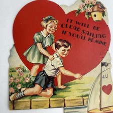Vintage Valentine- Boy &Girl w/ Toy Boat- I’m set SAIL in your direction