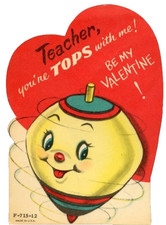 Vintage Collectible Die Valentine Day Greeting Card Toy Top Teacher You Are Tops