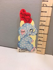 Vtg Valentine Card 40's Blue Stuffed Toy Elephant "Listening-All Ears" e