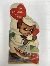 Unused Valentine Boy Dog Salute Toy Boat Ahoy Mate Vtg Greeting Card 1950s 1960s