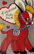 Vintage Hallmark 1950s Valentine Day Card Toy Pull Horse Paper 5" x 3.5"