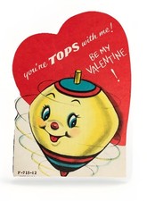 Vintage Valentine You’re Tops With Me Toy Top Spin Greeting Card 1950s 1960s A