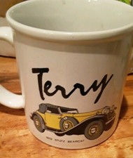 Vtg '83 Men's Coffee Mug Tea Cup Antique Stutz Bearcat Personalized "TERRY"