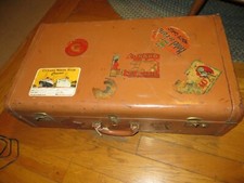 Antique Leather Suitcase Cunard Home Lines Venice Monte C SAS Labels First Class