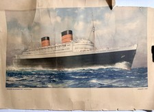 Queen Elizabeth 86,373 Ton Cunard Line Ship Antique Poster Print 20x29” Vintage