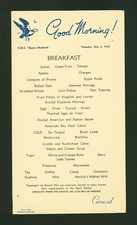 Cunard Line Ocean Liner Cruise Ship Vintage Breakfast Menu Thursday May 3, 1956