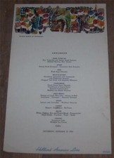 Vintage Holland America cruise line menu! M.V. Westerdam February 15th 1957