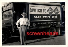 ANTIQUE Photo "RAILWAY EXPRESS DELIVERY TRUCK & EMPLOYEE" VG Nice Size