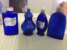 4 Antique Cobalt Blue Perfume bottles Vintage Evening In Paris Talcum Powder Set