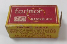 Antique EASTMOR Razor Blade Box w/3 Razor Blades. Box Missing Ends Nice Graphics