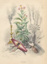 Antique 1847 FLOWERS PERSONIFIED Grandville HAND COLORED PRINT Tobacco BOTANY