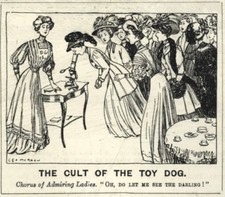 VINTAGE 1908 PUNCH CARTOON - SMALL - TOY DOG MANIA "CULT OF THE TOY DOG" SATIRE