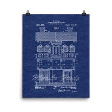 Dollhouse 1916 Vintage Toy House Patent Art Print Poster, 8x10 or 16x20