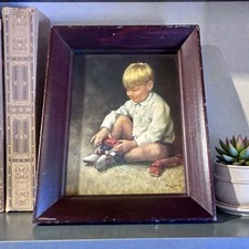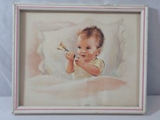 MCM Baby Print Signed DEBORAH Vintage Wood Frame Blue Eyes Blonde Hair Toy HTF