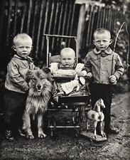 1923/71 Vintage AUGUST SANDER German Farm Children Dog & Horse Toy Photo Gravure