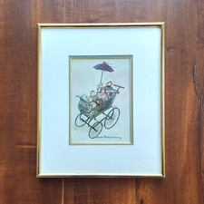 Vintage Maud Tousey Fangel Lithograph Print Baby Toddler Toy Lamb Floral Frame