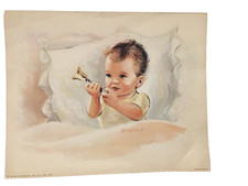 Arthur Kaplan Baby Print Signed DEBORAH Vintage Litho Blue Eyes Blonde Hair Toy