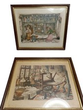 Vintage 1968 ANTON PIECK Framed Gold, Art Prints (2) 8x10 Press Shop & Toy Shop
