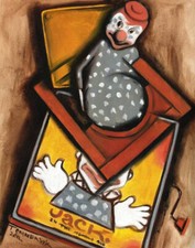 Vintage Jack in The Box Toy Artwork Cubist Clown Wall Art Abstract Clown Gift