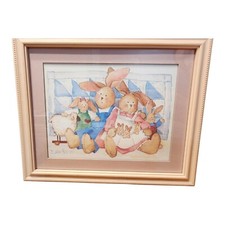 Vintage "Rabbit Family" Framed Print By Barbara Mock. 11" x 9". Kids Room Decor