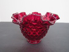 Fenton Art Glass Ruby Red Glass Hobnail Double Crimped Ruffled Bowl 4"H x 6 1/4"