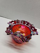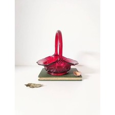 Fenton Ruby Red Carnival Basket Ribbon Weave Open Lace Edge Glass Bowl CADMIUM