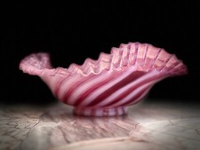 Vintage Fenton Art Glass Silver crest crimped edge bow