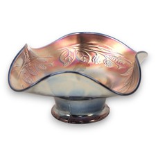 Vintage Fenton Carnival Glass Footed Bowl Grape Leaf Design Iridescent
