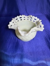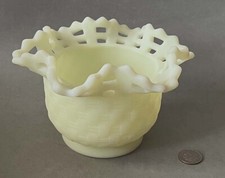 Vintage FENTON Custard Open Lace Ruffle Basket Candy Bowl Uranium Vaseline Glass