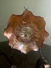 Fenton Glass Bowl Marigold Panther Vintage Ruffled Footed 5.75 in Carnival Glass